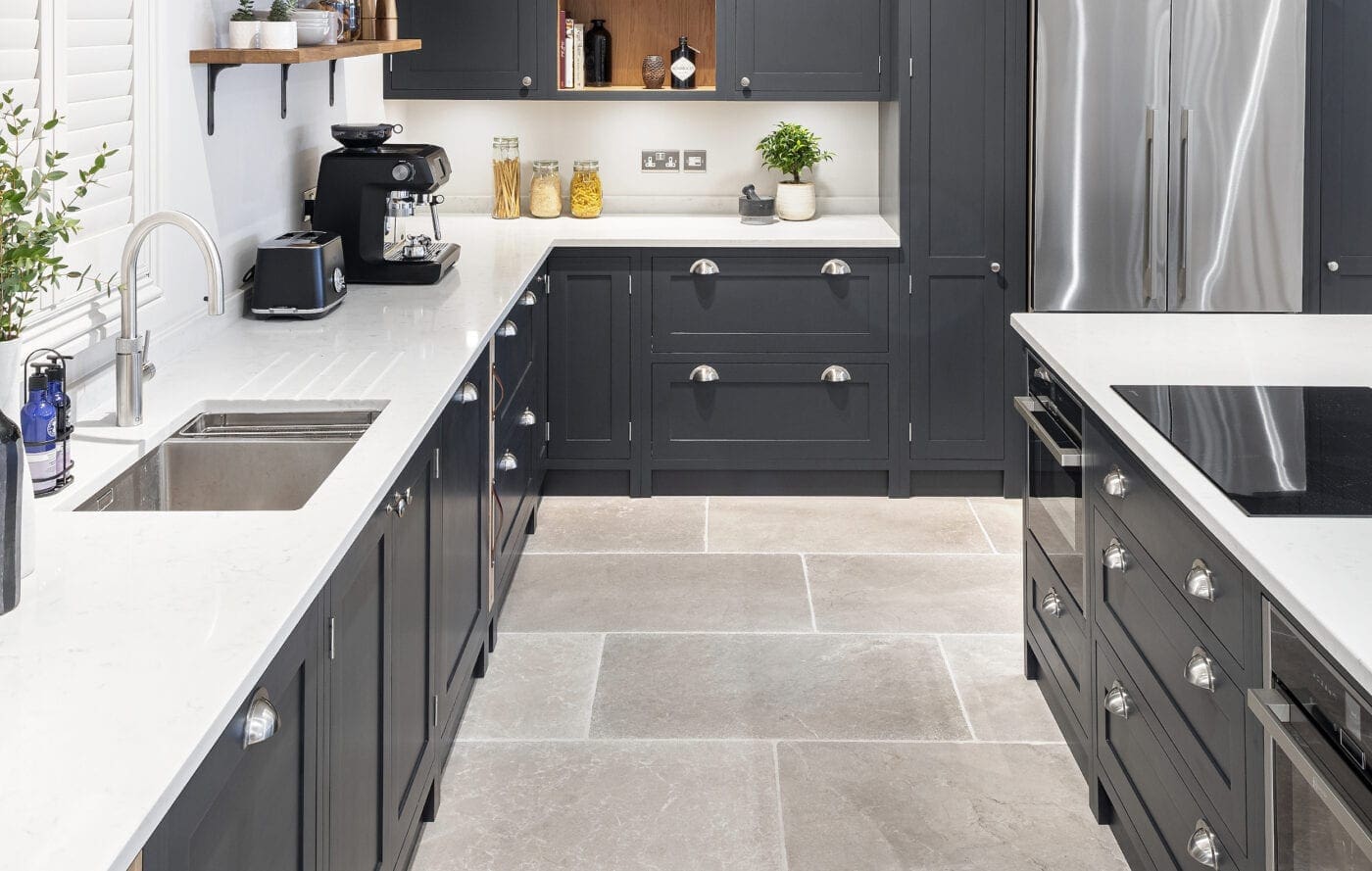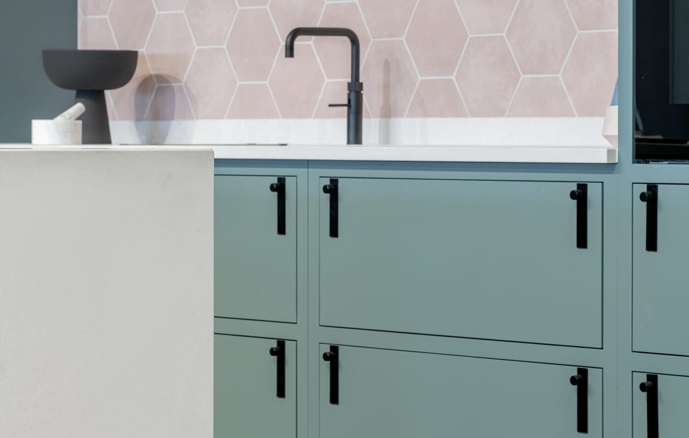 So, on this page, you’ll find a variety of different kitchens – both client projects and showroom examples – that were all created in the same way; yet feel totally unique. We’re sharing them with you here to give you an idea of the very different results that can be achieved, when you play around with layout, colour, and different worktops and handles.