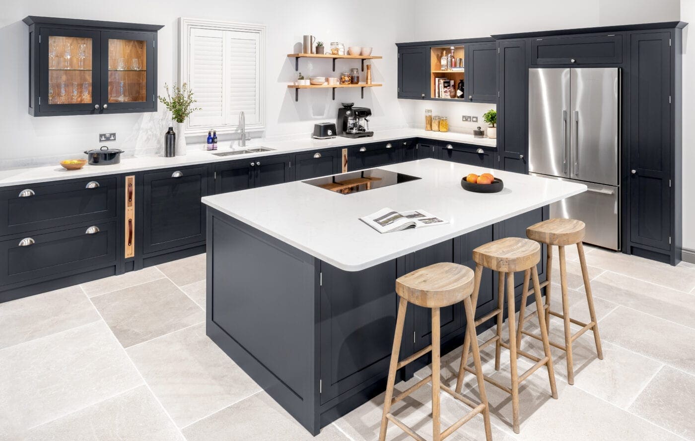 Staying true to the traditional in-frame style, this twist on our standard range brings clean lines and modern hardware, opening up the door to a completely different stylistic approach. From metropolitan pad to contemporary grand design, this kitchen is a great canvas for you to express your creative flair or minimalism. This kitchen showcases our personal favourite trends to give you a flavour of what we can do when we're given a little licence.
